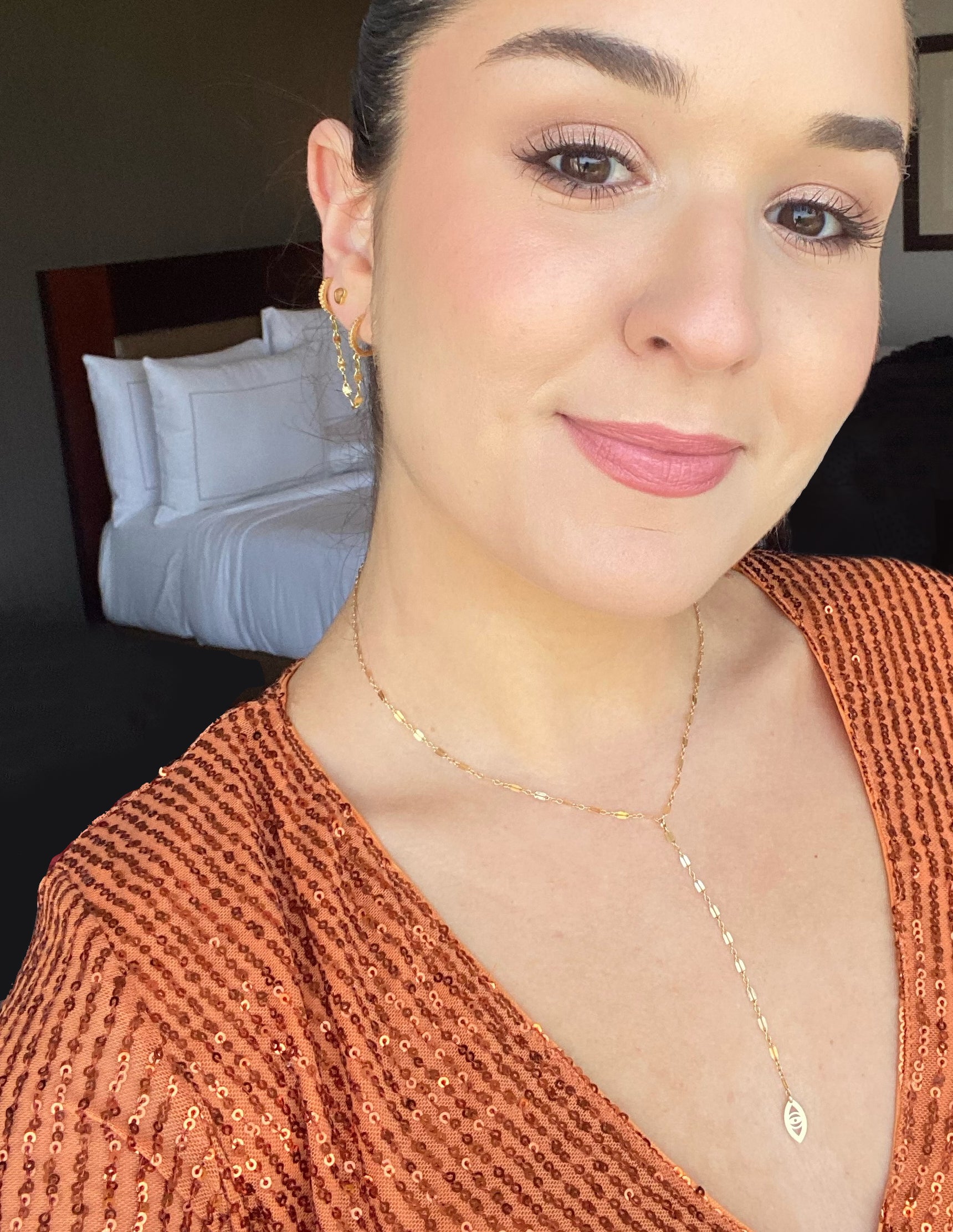 Our Evil Eye Lariat Necklace is a gorgeous stand alone statement. The Evil eye wards away any negative energy that you might encounter.